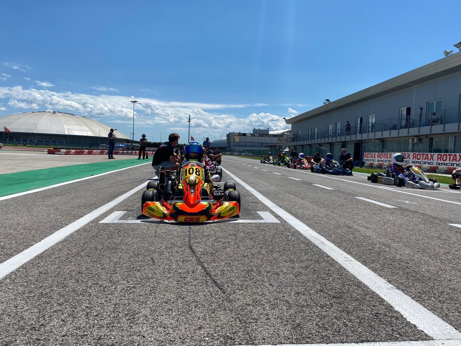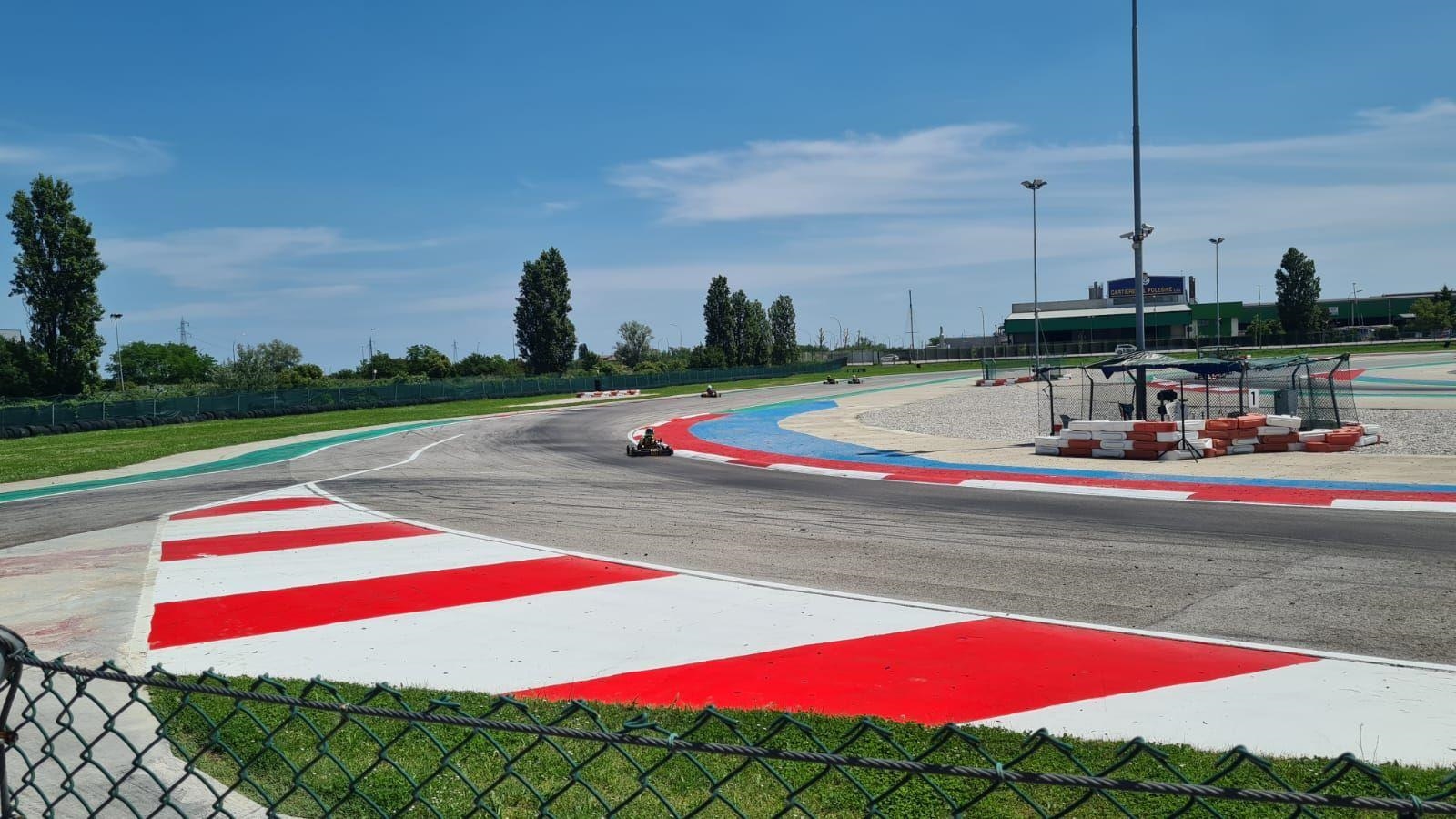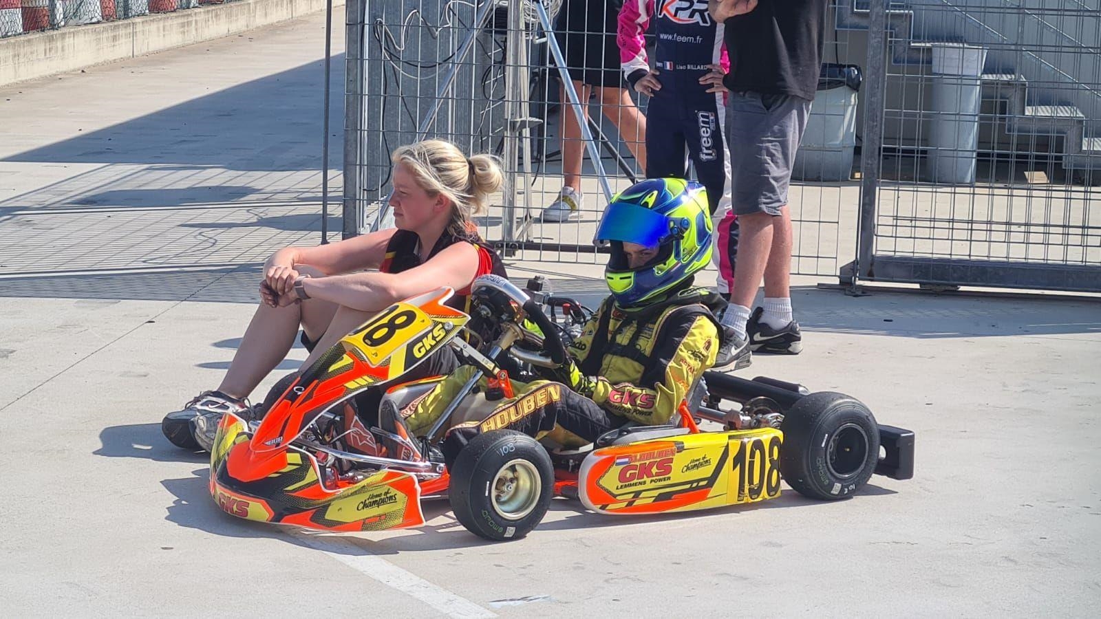 Na lang wachten en een nog langere auto rit naar Italië op dinsdag was het op woensdags eindelijk zover, de eerste trainingssessie. Een beetje anders dan vorig jaar omdat er nu meer snelheid in de kart zit, maar verder voelde het direct goed. Gedurende de dag werd ik steeds sneller en werd al snel duidelijk dat ik voor de top 3 mee kon doen. Op donderdag en vrijdag kwam er steeds meer en meer grip, waardoor het lastiger was om te rijden. We hadden de grip op de kart al afgebouwd en verschillende dingen geprobeerd om het nog minder te maken. Uiteindelijk kon er niet meer grip afgebouwd worden en was het aan mij. Sophie, mijn monteur, gaf tijdens een rondje wandelen over het circuit aan hoe ik hiermee om moest gaan en nadat ik het zelf gevoeld had wat Sophie bedoelde begreep ik wat mij te doen stond.